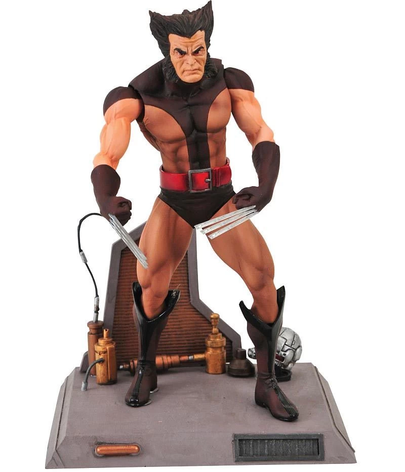 Marvel Select Actionfigur von Wolverinein der unmaskierten Version mit umfangreicher und detaillierter Display-Base.
