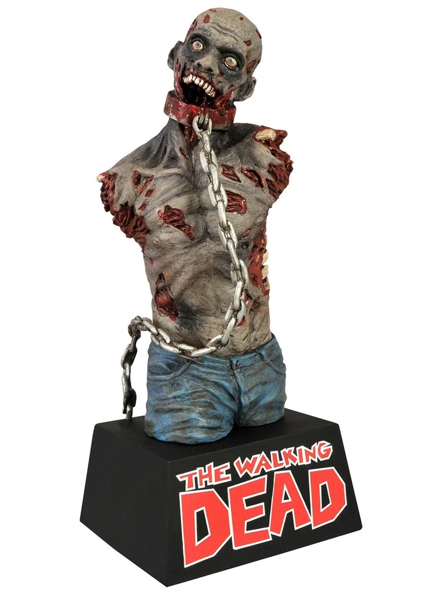 Detaillierte Diamond Select Spardose mit der Büste eines Haus-Zombies von Michonne.