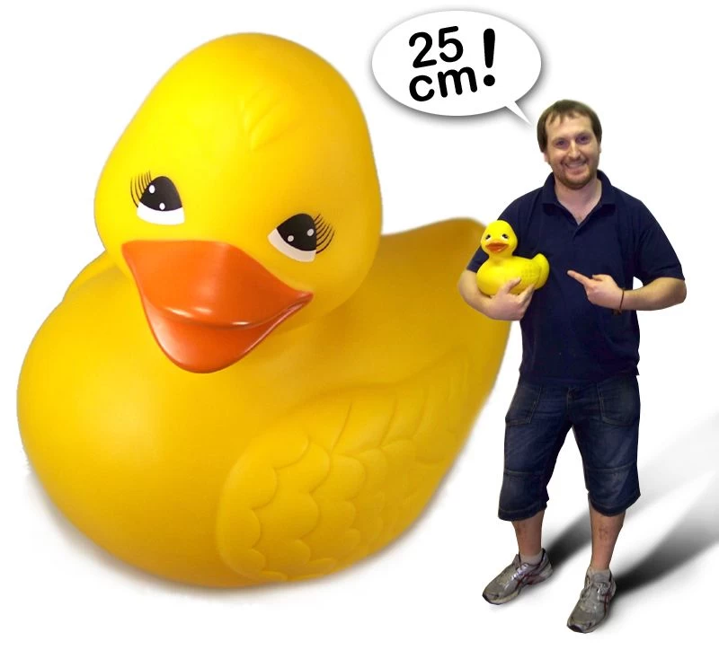 Die große Mutter aller Badeenten mit einer stattlichen Größe von 25cm. Das Quietscheentchen besticht durch den süßen Augenaufschlag.