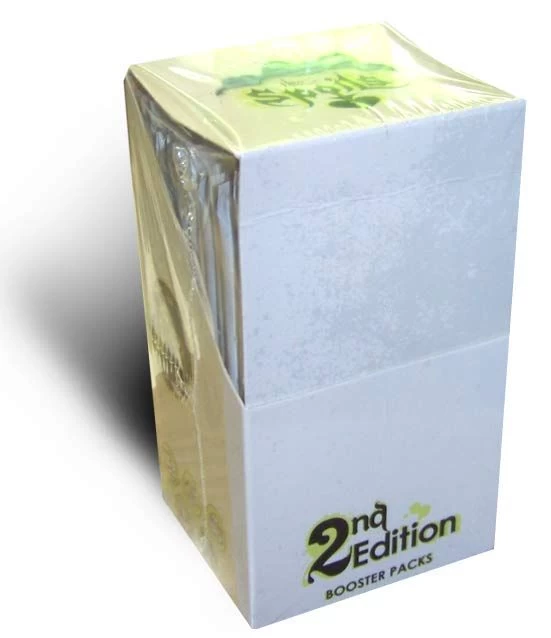 Booster-Display mit Sammelkarten der zweiten Ausgabe des TCG The Spoils.