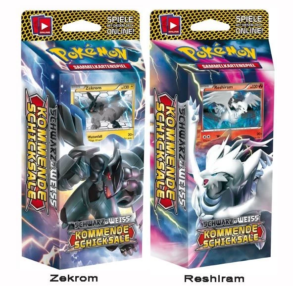 Auf dem Produktbild sind beide erhältlichen Themendecks zum Vergleich abgebildet, bitte wähle. Themendeck: Explosive Effekte (Reshiram), Volt-Vortex (Zekrom);