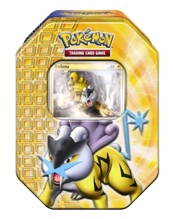 Die 17. Pokemon Tin-Dose kommt diemal mit zwei Premiumkarten Raikou in Deutsch. Inhalt: 4 Booster aus den Platin bzw. HGSS Serien a 9 Sammelkarten und Premiumkarte Donner-Pokemon Raikou in zwei verschiedenenen Holovarianten.Auch diese Box ist wieder mit einem Sichtfesnter für Deine Lieblingskarte ausgestattet.