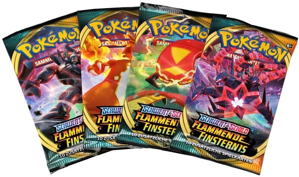 Pokémon Booster Display der Schwert & Schild Serie „Flammende Finsternis“ in Deutsch.