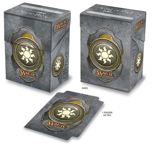 Magic Deckbox im White Mana Design. Magic the Gathering Lizenzprodukt, Motiv: weißes Mana, Mit Beschriftungsfeld, Nimmt bis zu 82 Sammelkarten in Sleeves auf, Inklusive einem Kartentrenner.